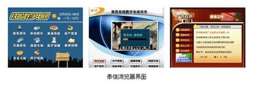 泰信瀏覽器是中國(guó)性能最高、兼容性最強(qiáng)的瀏覽器,支持PUSH VOD功能,可應(yīng)用于文化共享工程。