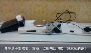通常人們理解的網(wǎng)絡(luò)機(jī)頂盒是市面上單純的網(wǎng)絡(luò)盒子,與家中可接收有線信號(hào)的傳統(tǒng)廣電機(jī)頂盒完全不同,其擁有海量視頻、游戲等,只要接入互聯(lián)網(wǎng)即可把玩。但是想要通過(guò)網(wǎng)絡(luò)盒子接收高畫(huà)質(zhì)無(wú)緩沖的廣電有線電視信號(hào),只能通過(guò)下載安裝第三方直播軟件實(shí)現(xiàn),且用戶(hù)體驗(yàn)并不理想,經(jīng)常出現(xiàn)畫(huà)面不清晰、卡頓現(xiàn)象。所以就出現(xiàn)了家中盒子排隊(duì)排的現(xiàn)象: