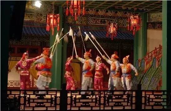 但還是有巨大的不同。當(dāng)年能看大戲的主要是少數(shù)貴族,而且沒有種類太多的樂器,貴族們離戲臺(tái)最遠(yuǎn)也不過10米,演員的坐念唱打就在眼前。