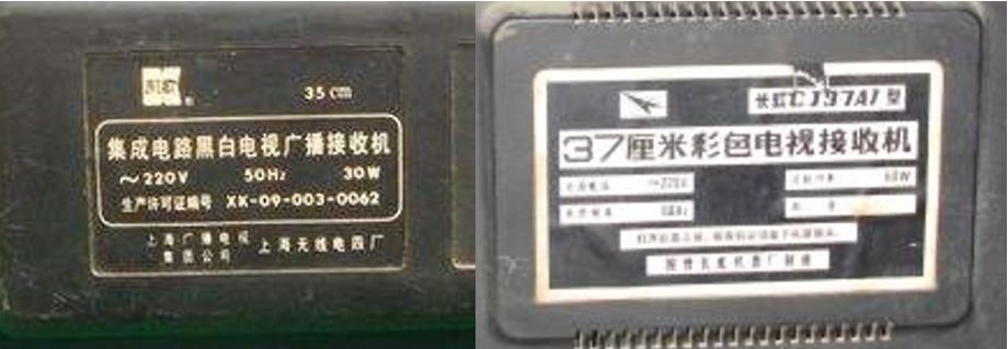 電視機的全稱是“廣播電視接收機”。從下面的兩款老式電視機的后面板標貼上可以看出“接收機”是電視機的主要功能。