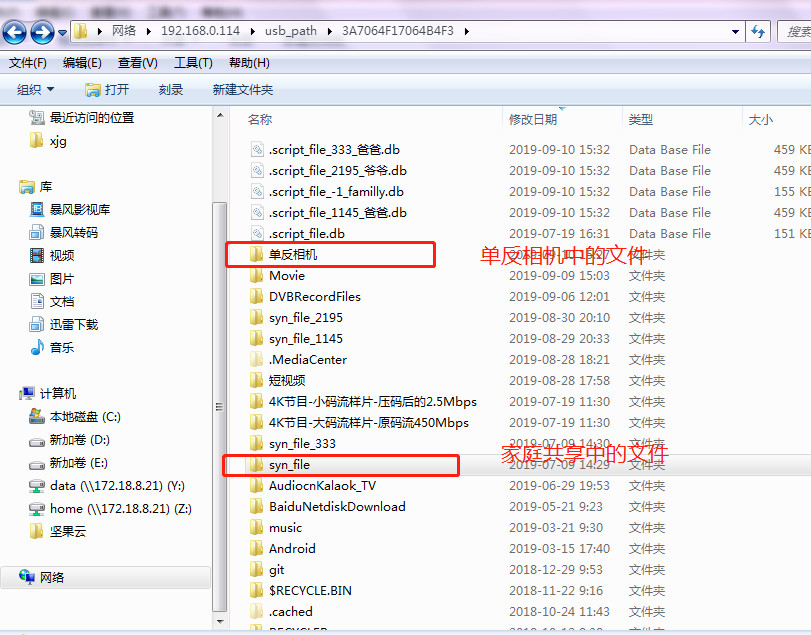 在T70的硬盤中創(chuàng)建單反相機(jī)專用的文件夾,再也不用擔(dān)心電腦硬盤被擠爆了。硬盤中的音樂(lè)、圖片、視頻,都有每個(gè)人都有自己的“個(gè)人空間”和“家庭共享”空間。家庭共享文件夾是“syn_file”,可以把編輯后的照片放在這里與家人共享。