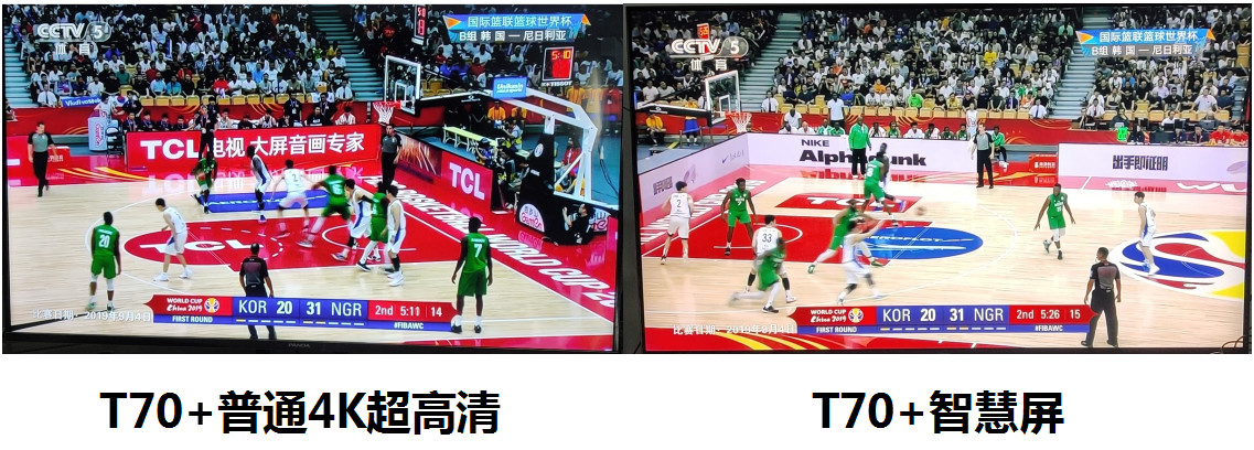 在連接T70收看圖像快速運(yùn)動(dòng)的體育頻道時(shí),智慧屏的運(yùn)動(dòng)補(bǔ)償似乎沒(méi)有發(fā)揮作用,也沒(méi)有找到菜單中開啟運(yùn)動(dòng)補(bǔ)償?shù)拈_關(guān)選項(xiàng),有待今后慢慢研究。