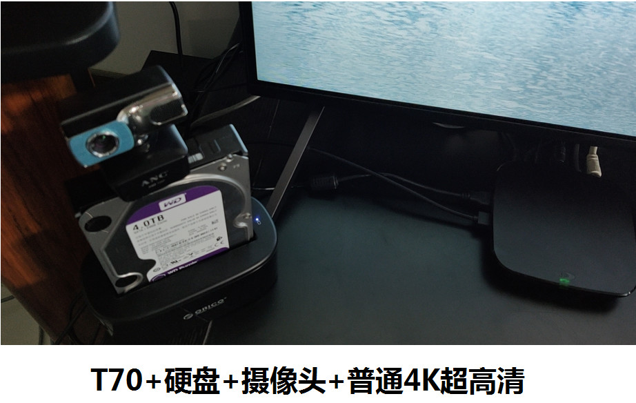 這是插在T70上存儲(chǔ)照片和視頻的4T硬盤及硬盤盒。硬盤盒上有電源開關(guān),在需要的時(shí)候打開電源,不用擔(dān)心隱私泄露。如果T70在10分鐘左右不操作硬盤,硬盤停止轉(zhuǎn)動(dòng)。