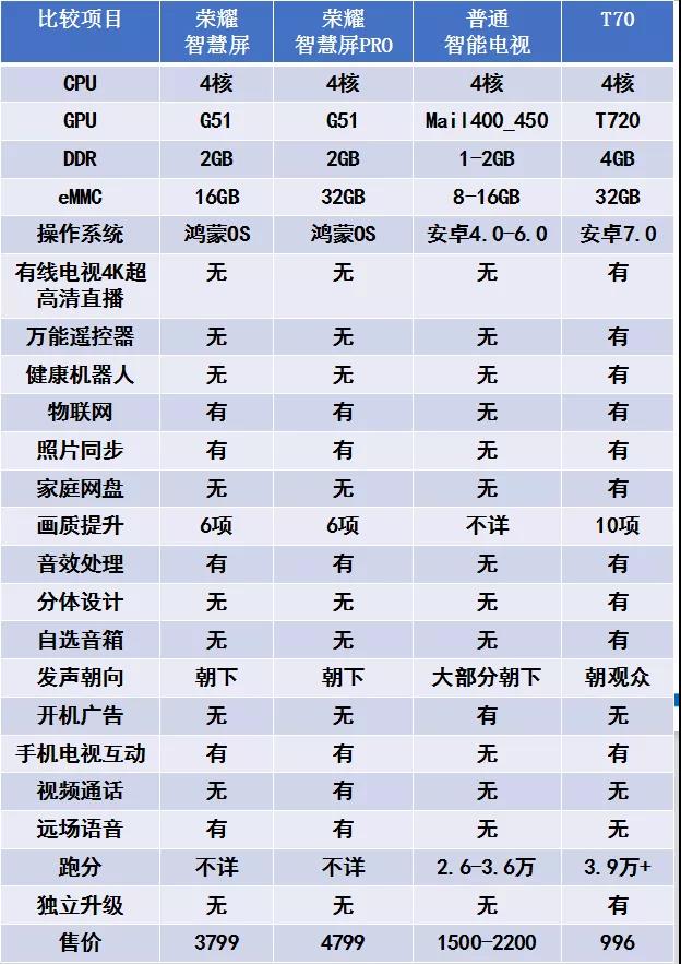 智慧屏、普通4K電視、T70綜合對(duì)比