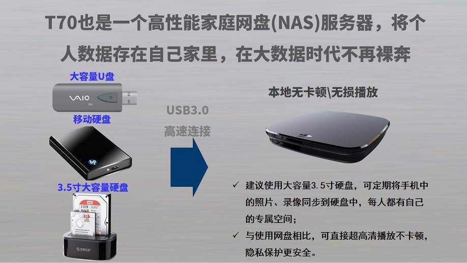 泰信T70可以連接本地大容量硬盤作為家庭網盤使用,華為智慧屏采用云存儲:
