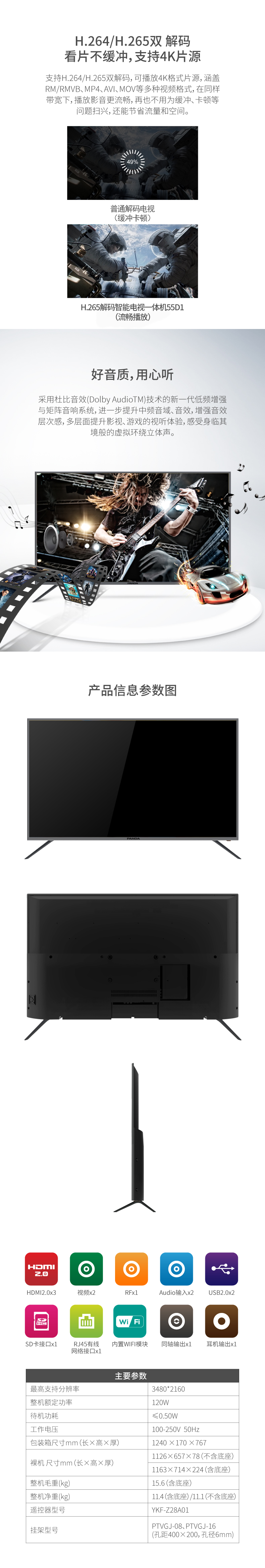 2020新品:泰信4K超高清智能電視一體機55D1