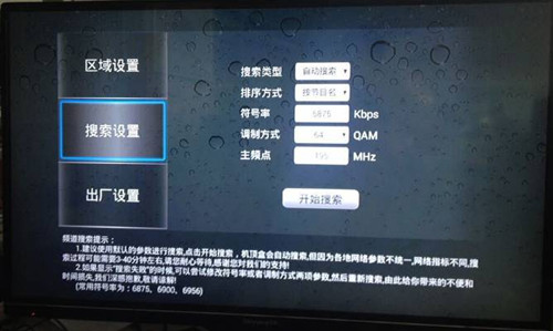 ,即可彈出有線電視區(qū)域設(shè)置界面如圖2所示,設(shè)置完畢“區(qū)域設(shè)置”相關(guān)信息后,點(diǎn)擊“確定”,即可下載獲得當(dāng)?shù)赝暾挠芯€電視節(jié)目信息,若沒成功下載,則進(jìn)入如圖3所示的“搜索設(shè)置”界面,點(diǎn)擊自動(dòng)或者手動(dòng)搜索,大約3分鐘后即可獲得當(dāng)?shù)赝暾挠芯€電視節(jié)目信息,隨后即可輕松收看所插入智能卡開通的全部清晰穩(wěn)定的有線電視直播節(jié)目了,如圖4所示。