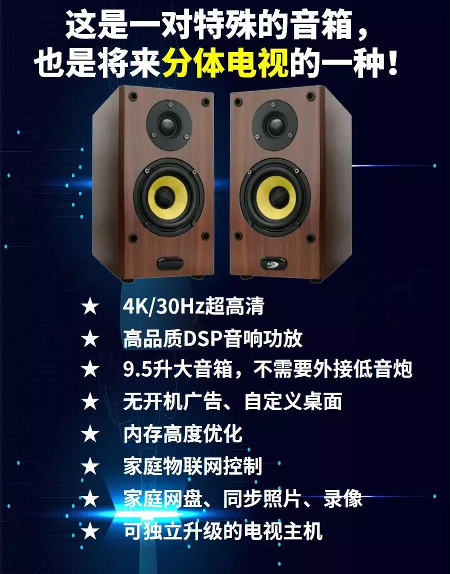 T6K自帶4寸音箱,是針對5-8成新電視升級的最佳選擇,這些電視大都是高清彩電,即使是4K也是低標準的,只需690元,經濟實惠。點擊以下圖標了解T6K詳情并購買:
