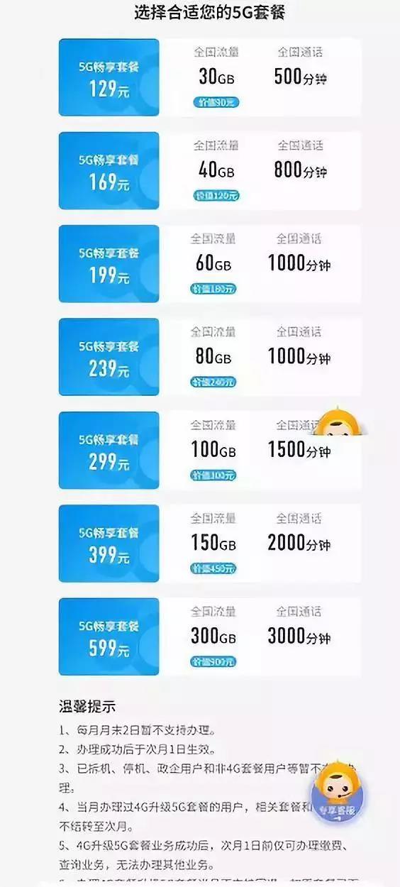 11月1日,三大電信運營商的5G套餐出爐,價格出奇一致,電信聯(lián)通套餐價格一樣: